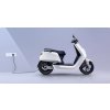 Smart elektrický skútr NIU NQi v lesklé bílé barvě pro dvě osoby, facelift poslední verze, 12" kola, odnímatelný (v podlaze) akumulátor Lithium-Ion FE 60 V 26 Ah s BMS, rychlost 45 km/h, motor BOSCH 1800 W, 3 režimy jízdy, stoupání 28 %, dojezd až 80 km v režimu E-Save, užitečné zatížení 155 kg,barevný LED dashboard,Keyless odemčení(Bluetooth),el.zámek sedla,pneu Kenda,USB A+C,nová ECU V36,rozšířené funkce NIU APP